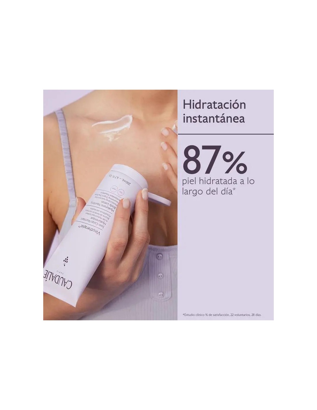- Su textura fresca y ligera penetra la piel rápidamente sin efecto graso, a la vez que permite vestirse inmediatamente después de su aplicación.