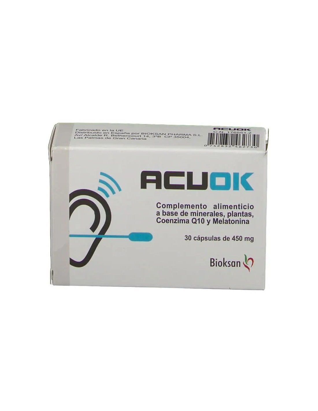 ACUOK es un suplemento alimenticio que tiene el objetivo de ayudar a mantener el normal funcionamiento del oído, tratando los vértigos y mareos repentinos que ocurren al levantarse bien sea estando dormido o sentado por mucho tiempo. Es un producto de consumo diario que se puede utilizar tanto para tratamiento como prevención. Entre los componentes más importantes del complemento están la melatonina, el magnesio, ginkgo biloba y la coenzima Q10.